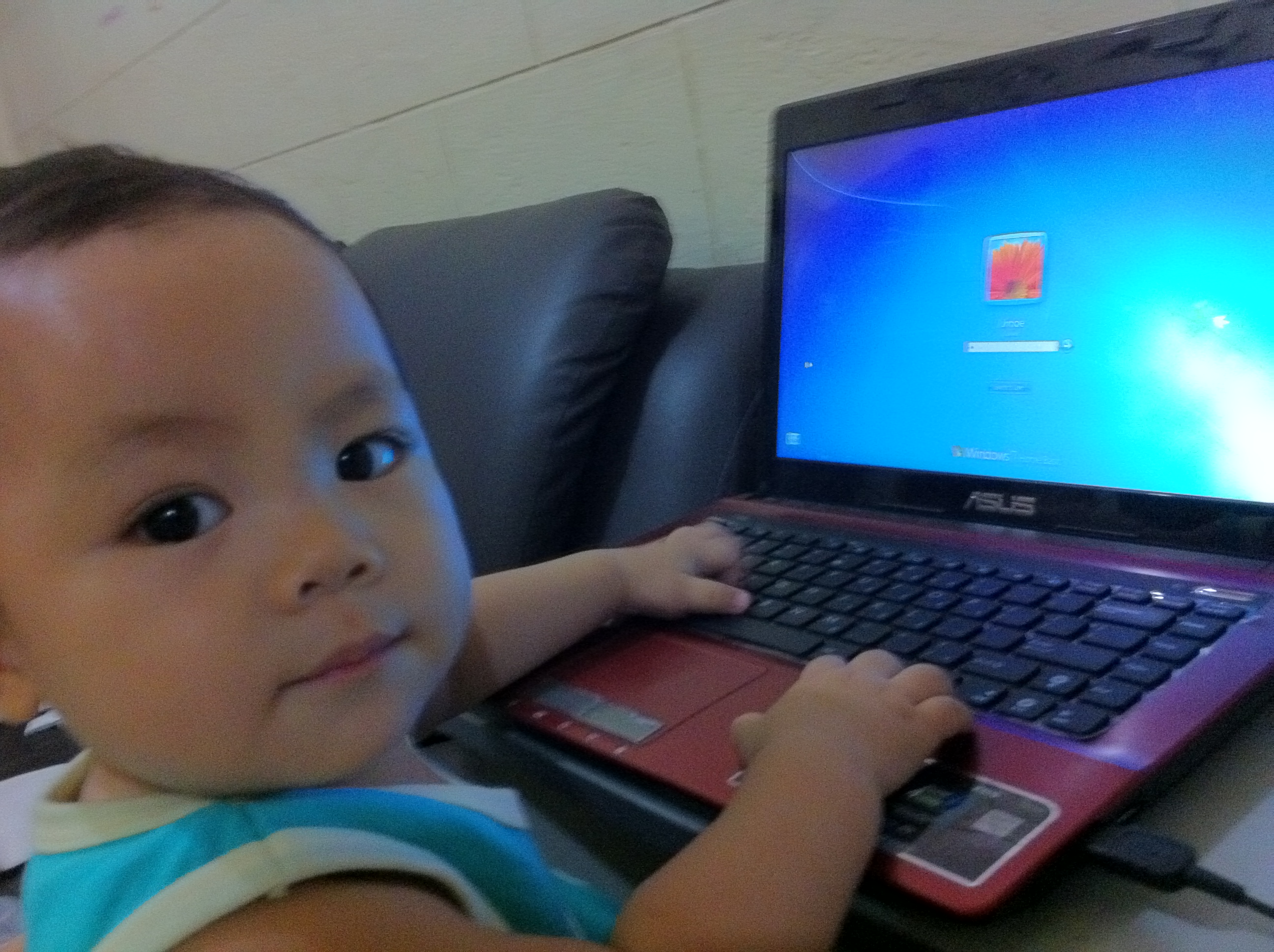 Gab loves playing with daddy’s stuffs. When Jinoe was at Cebu for the Run United run for the weekend, it was a perfect time to take over daddy’s laptop!