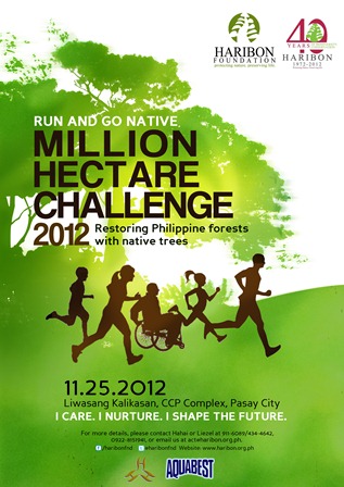 The Million Hectare Challenge 2012 will be held on November 25, 2012 at the Cultural Center of the Philippines. The theme of the event is “I Care. I Nurture. I Shape the Future”. The Million Hectare Challenge 2012 Restoring 1 million hectares of Philippine rainforests. And is celebrating its 40 years of biodiversity conservation.