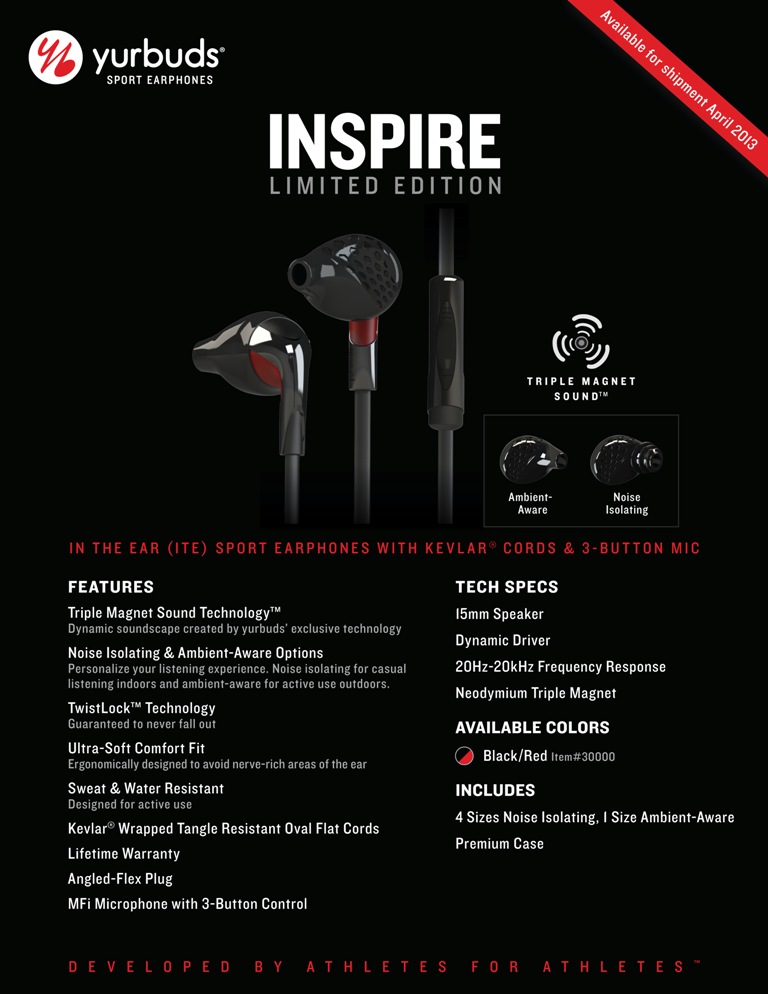 “The Limited Edition line is a creation stemming from years of research, work and product development. It truly is the ultimate sport earphone and is yurbuds at its best,” said Daniel DeVille, Director of Marketing for yurbuds.