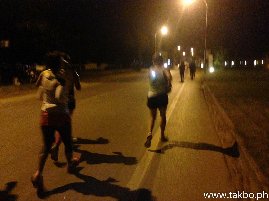 There are humps just a few meters from the starting line and some runners got tripped on it. Janine met a runner who got a bad bruise from a fall in those humps. He had to run for 42 kilometers with blood in his arms. So be careful when running in a poorly lighted road.