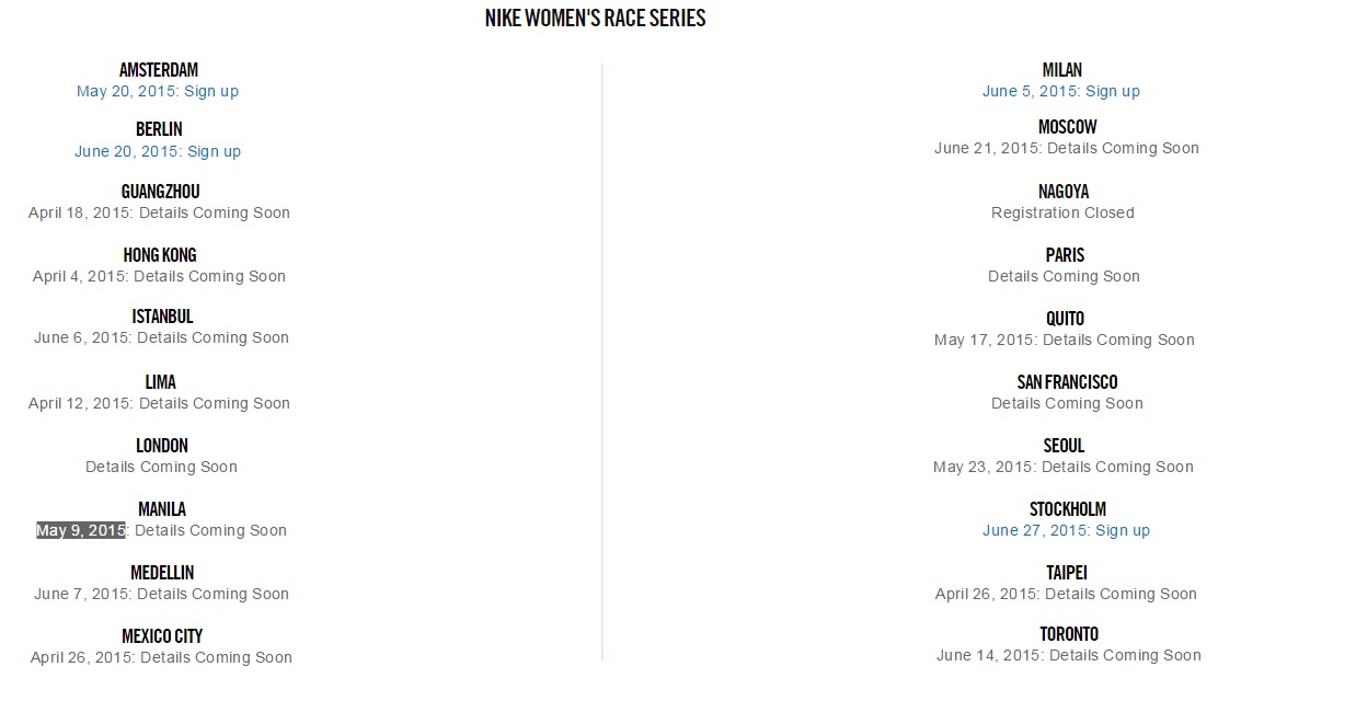 MAY 9, nakalagay sa Nike Women’s Series… It’s a Sunday! http://www.nike.com/us/en_us/c/women/events