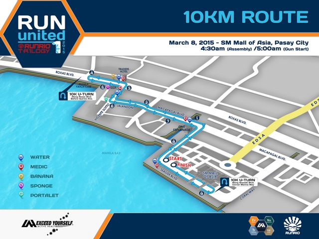 The Unilab Run United 1 2015 will be on March 08, 2015 am at SM Mall Of Asia, Pasay City. This is part of the Run United 2015 RunRio Trilogy. The 2015 Run United 1 has 5k, 10k, and 21k race categories. All categories will have a start and finish at the SM Mall of Asia grounds.