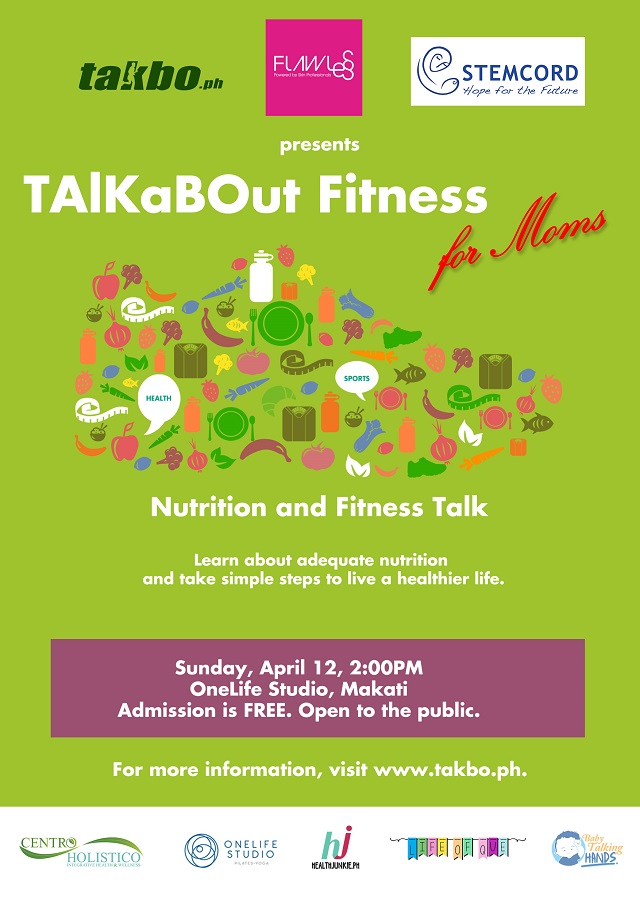 TAlKaBOut Fitness For Moms is co-presented by StemCord Philippines, Flawless and Takbo.ph This is also made possible by our our generous sponsors Centro Holistico – Integrative Health and Wellness, OneLife Studio, Baby Talking Hands, Health Junkie and Life of Que.