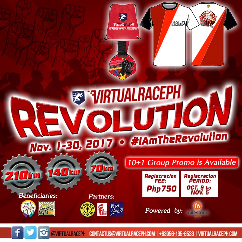 VirtualRacePH Revolution 2017 will be on November 1 to 30, 2017.