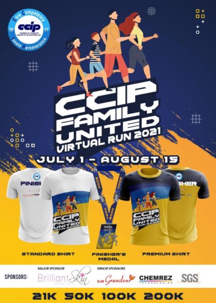 In adopting the new normal, the Chamber of Cosmetics Industry of the Philippines is staging the CCIP’s Family United Virtual Run 2021. It’s a unique opportunity for us to stay fit and be physically active in the safety and convenience of our homes.