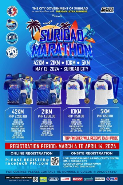 Surigao Marathon 2024 will be on May 12, 2024 in Surigao City.