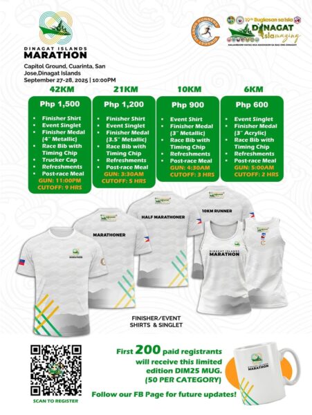Dinagat Islands Marathon 2025 is the 1st ever Full Marathon in the Province! In celebration of the 19th Charter Day: Dinagat Islamazing and the 4th Ka Remedy Islamazing Run.