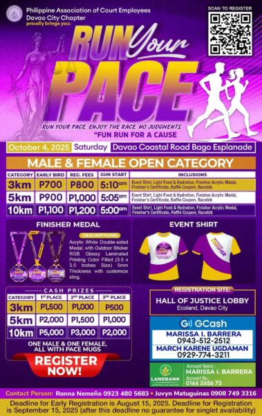 Run Without Judgements on October 4, 2025! Run your pace at the scenic Davao City Coastal Road!