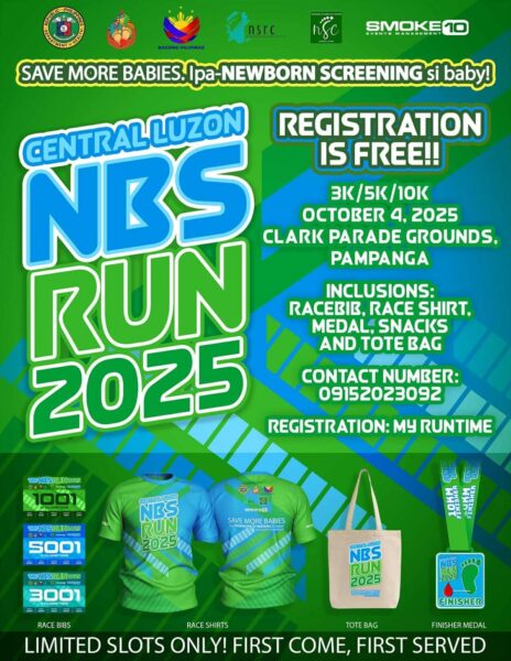 Join us in celebrating National Newborn Screening Awareness Week with a 10KM, 5KM, or 3KM on October 4, 2025 at CDC Parade Grounds, Clark, Pampanga. Let’s run and save more babies. Ipa-newborn screening si baby!