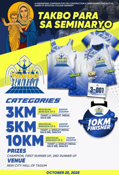 The Queen of Apostles College Seminary is set to hold a meaningful fundraising event titled “Takbo para sa Seminaryo” on October 25, 2025, aimed at supporting the ongoing construction developments of the seminary. The run will kick off at the New City Hall and will take participants through the Flyover route.