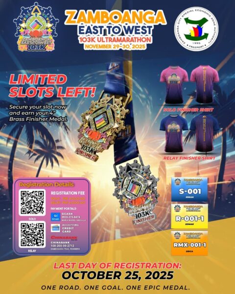 Zamboanga East to West 103K 2025 will be on November 29-30, 2025 in Zamboanga City.