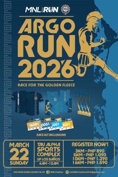 Set in the lush and storied campus of UP Los Baños and slated on March 22, 2026, the run brings participants through trail paths, open fields, and scenic ascents that test both body and spirit. Like Jason and his Argonauts braving seas and monsters, every runner is invited to meet their own challenges head-on by joining any of these four categories: 16K, 10K, 5K, and 3K.