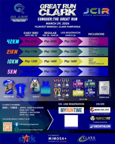 Join Great Run Clark: Conquer – The Great Run this March 29, 2026 at Filinvest Mimosa+ Clark Pampanga!