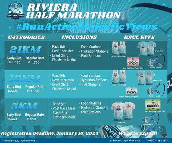 Run for the Blue, Race for the View! Join us on January 25, 2026, for the Riviera Half Marathon in the Tourism Capital of Southern Leyte—Padre Burgos!