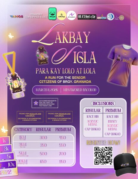 Lakbay Sigla: Para Kay Lolo at Lola 2026 will be on March 8, 2026 at Upper East – Megaworld Bacolod. Whether you walk, jog, or go full competitive mode, you’re moving for something bigger than the finish line.