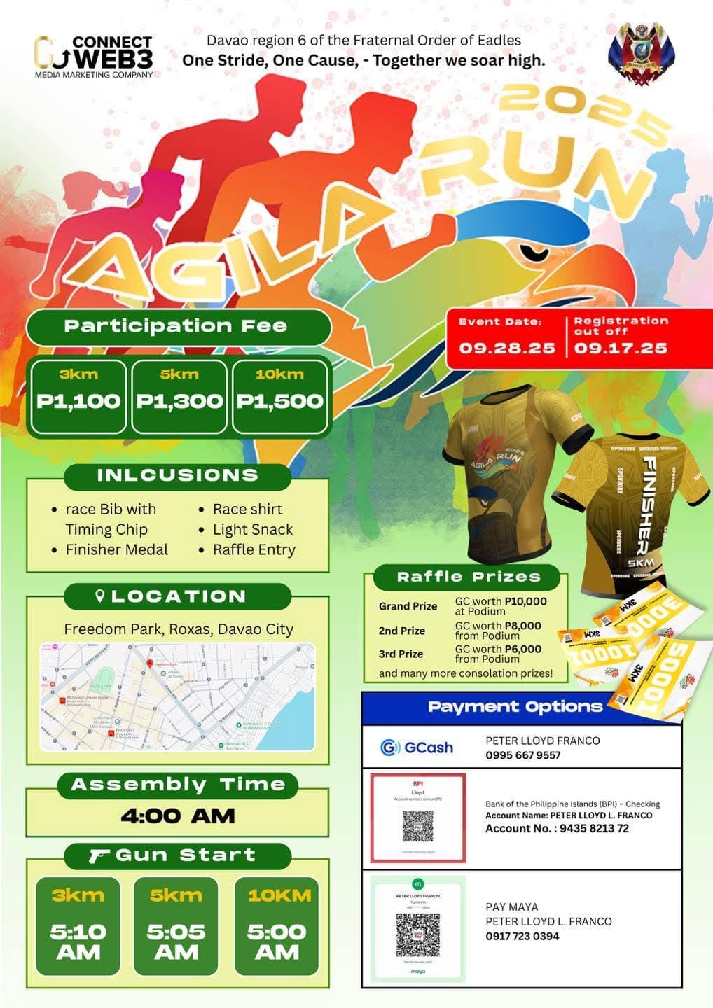 Get Ready to Ruuuuuunnnn! Here’s what you are waiting for! Join us this coming September 28, 2025 for the #AGILARUN2025, a fun and meaningful run open to all ages and fitness levels! Aguila Run 2025September 28, 2025Freedom Park, Roxas, Davao City EVENT DISTANCES 3KM, 5KM, 10KM REGISTRATION FEES 3KM...