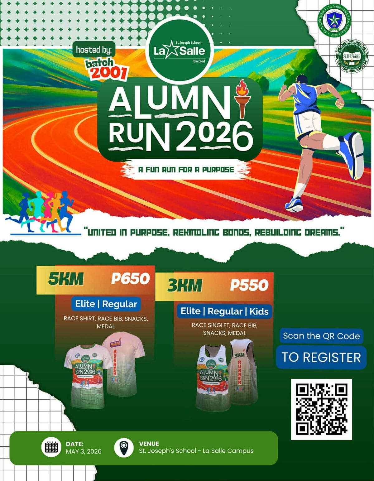 The Alumni Batch 2001 of St. Joseph School – La Salle warmly invites students, alumni, faculty, friends, and the entire community to be part of a meaningful and exciting event on May 03, 2026.With the theme: “United in Purpose, Rekindling Bonds, Rebuilding Dreams.” Let us come together as one...