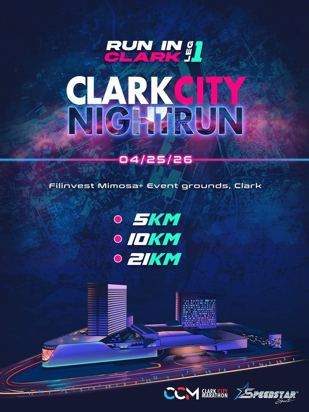 Light up Clark and run the night!Registration opening soon. Save the date! Clark City Night Run 2026April 25, 2026Filinvest Mimosa, Clark, Pampanga...