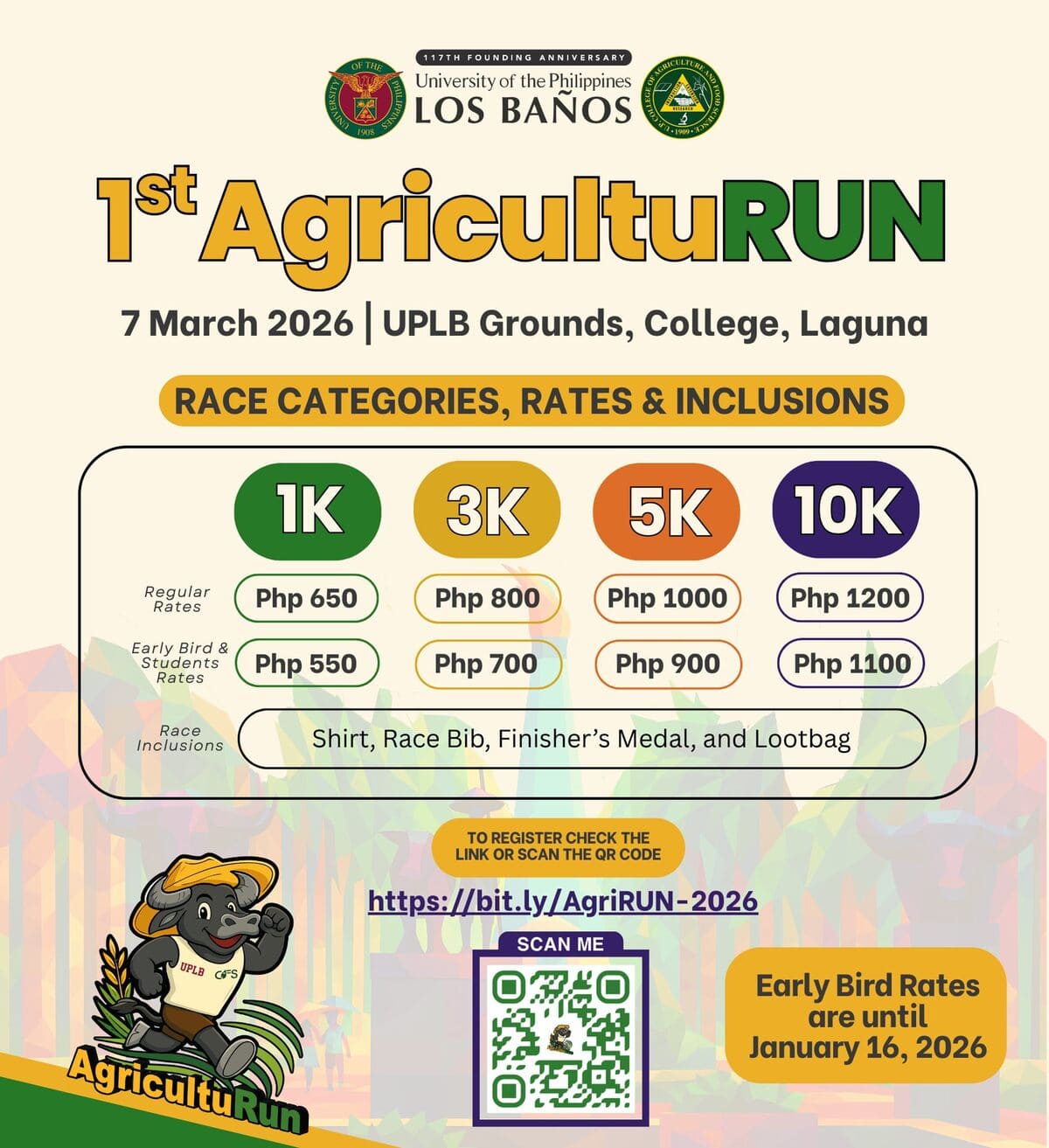 Registration is now open for the 1st AgricultuRUN of the UPLB College of Agriculture and Food Science, with the theme “Traversing Fields between Academe and Industry.” The event highlights CAFS’ long-standing partnerships with the agriculture industry and brings together alumni, students, and the UPLB community. AgricultuRun is a fun...