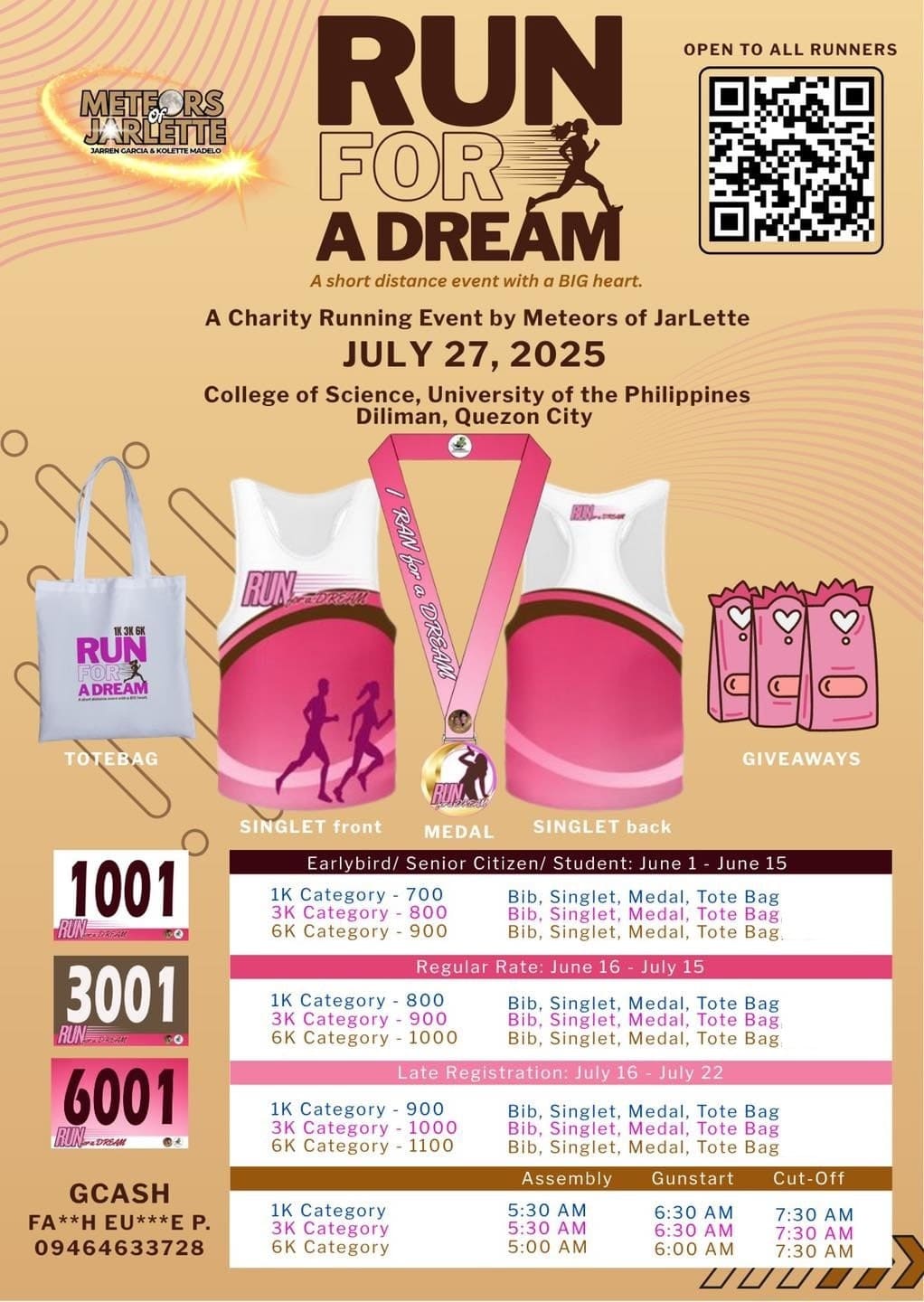 Run Med Tech 2025September 14, 2025Matalino St., East Ave., Quezon City EVENT DISTANCES 1.5KM, 3KM, 5KM, 10KM REGISTRATION FEES 1.5KM – 9993KM – 10995KM – 119910KM – 1499 Inclusions: Singlet + Medal + Racebib (Finisher Shirt for 10K) WHERE TO REGISTER Online: https://jcirevents.myruntime.com/register/run-med-tech-takbo-para-sa-manggagawang-pangkalusugan Visit FB Page: https://www.facebook.com/JCIReventsManagement...