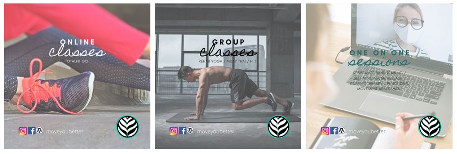 Sign up and join the workout with Move You Better. There will be one-on-one sessions, LIVE group classes and ONLINE group classes. Classes offered are: TotalFit Go HIIT Muay Thai Rehad Yoga One on One Sessions: Resistance Band Training Self Myofascial Release Cupping Therapy Functional Movement Assessment All you...